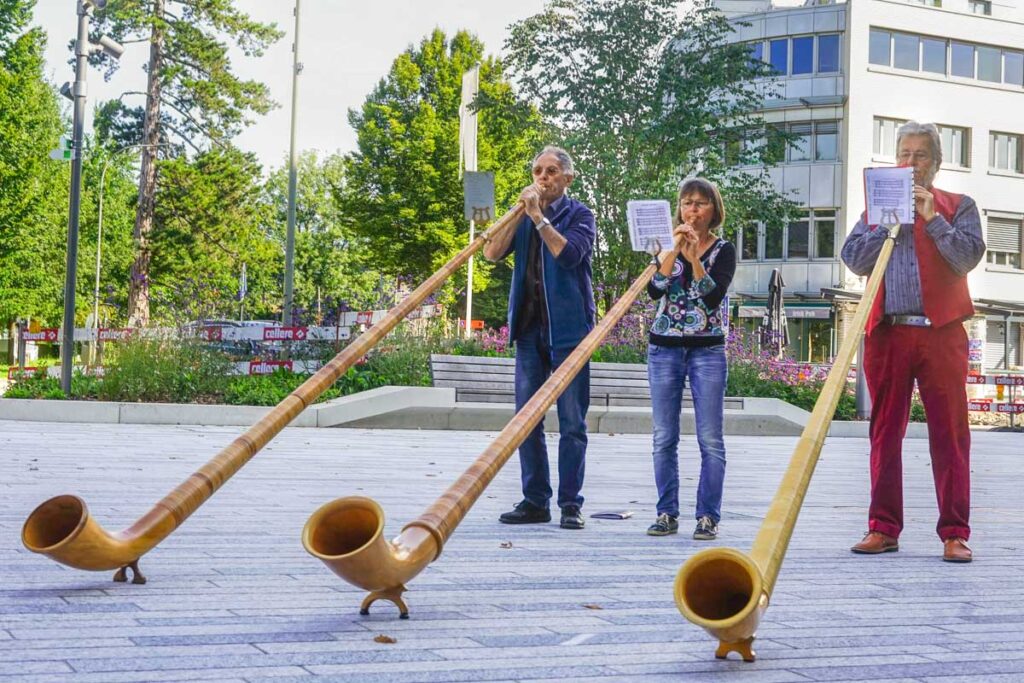 Bei schönem Herbstwetter feierten wir vom Claro Weltladen zusammen mit unserem neuen Nachbarn buk (Buchladen des Vereins Buch+Kultur) am 13. September 2025 die Eröffnung unserer neuen Läden. Zum Auftakt spielte ein Alphorntrio. Es folgten Reden des buk-Präsidenten Christoph Vollenweider, des Stadtpräsidenten Pascal Bassu und unserer Präsidentin Irene Kupper. Am Nachmittag unterhielt uns Pius Larcher mit swingenden Klängen.