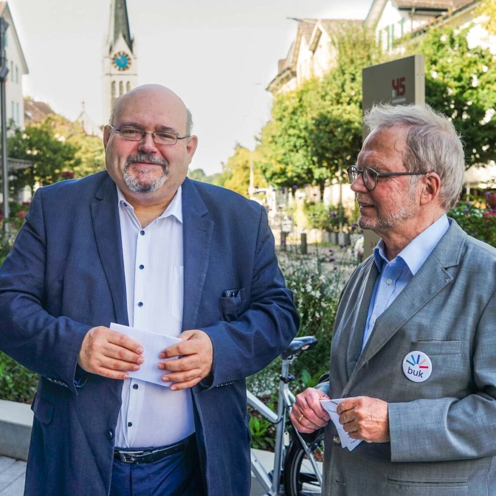 buk-Präsident Christoph Vollenweider (r.) begrüsst Stadtpräsident Pascal Bassu (l.)