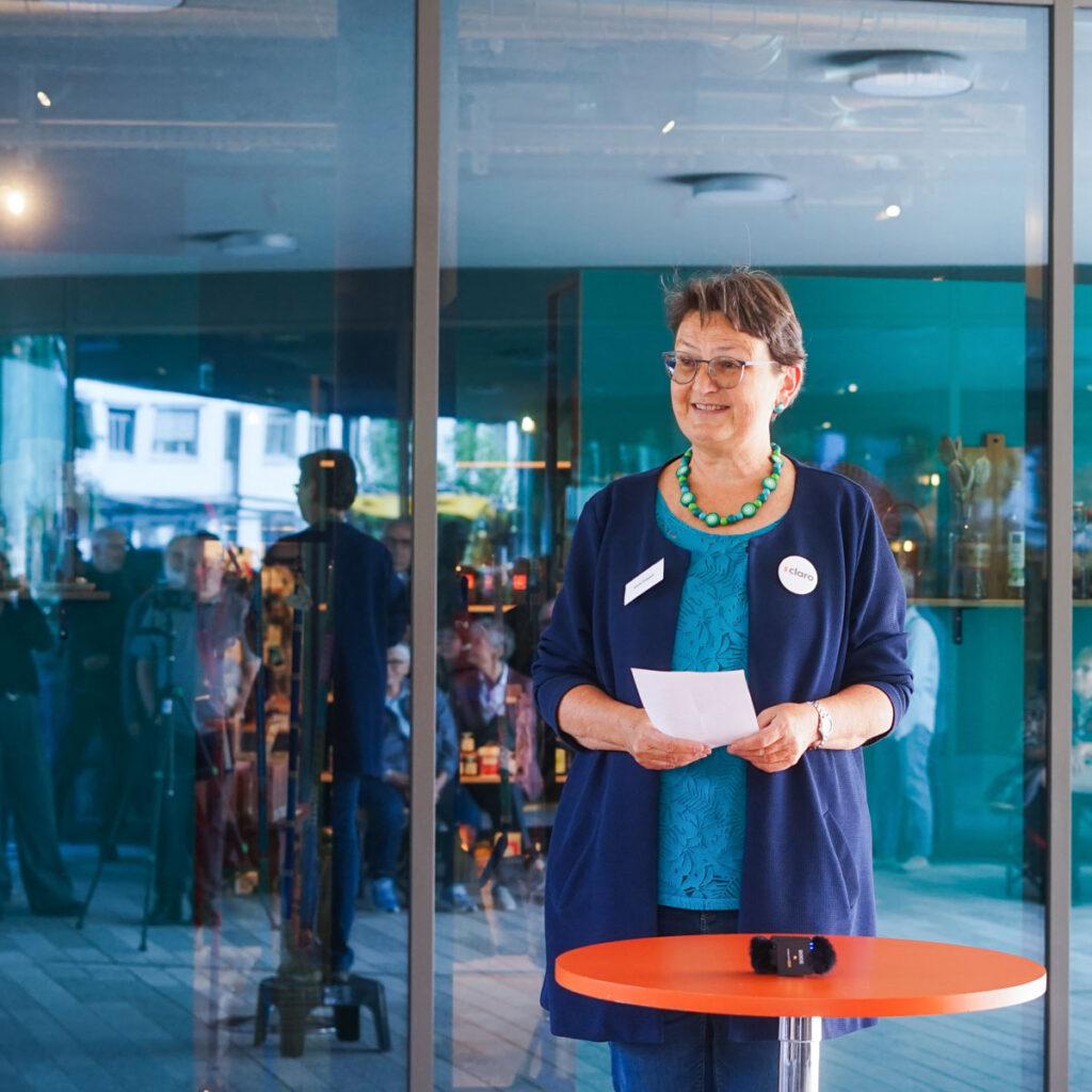 Claro-Präsidentin Irene Kupper heisst die Gäste willkommen