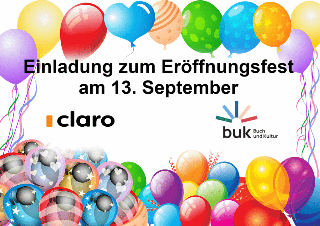 Der Buchladen buk und der Claro Weltladen Wetzikon möchten mit Ihnen die Eröffnung ihrer neuen Räumlichkeiten feiern. Stossen Sie mit uns an, geniessen Sie eine Suppe und ein Stück Kuchen, versuchen Sie Ihr Glück in einem Wettbewerb und freuen Sie sich über weitere Attraktionen. Um 11 Uhr wird Stadtpräsident Pascal Bassu eine Begrüssungsansprache halten. Den Einladungsflyer finden sie hier.
