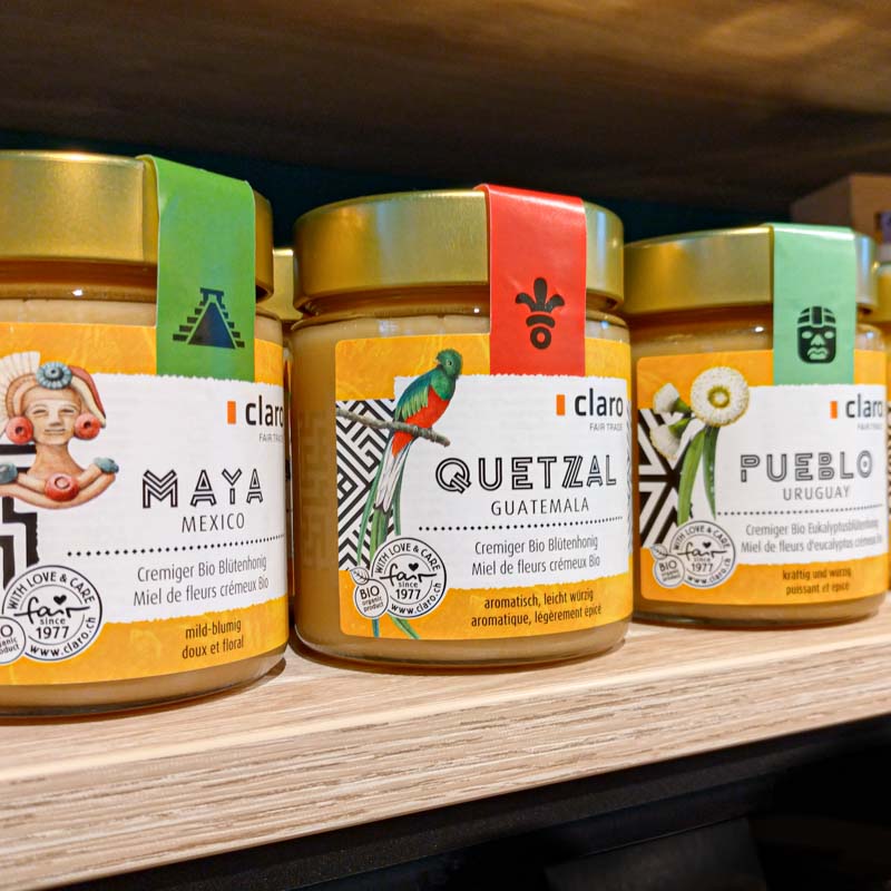 Alle unsere Lebensmittel erfüllen die Fair-Trade-Kriterien und die allermeisten stammen aus biologischer Produktion. Genuss, der wirkt!